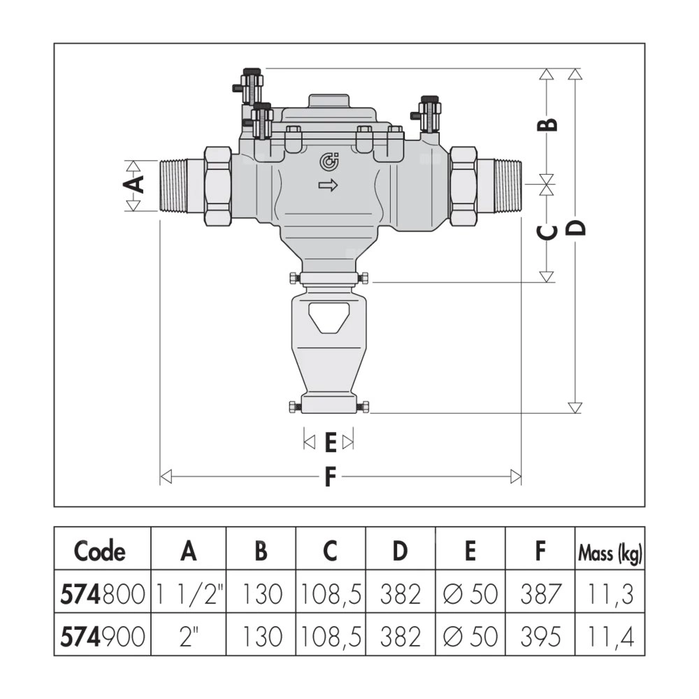 Przed izolatorem przepływów zwrotnych należy zamontować filtr siatkowy serii 577.