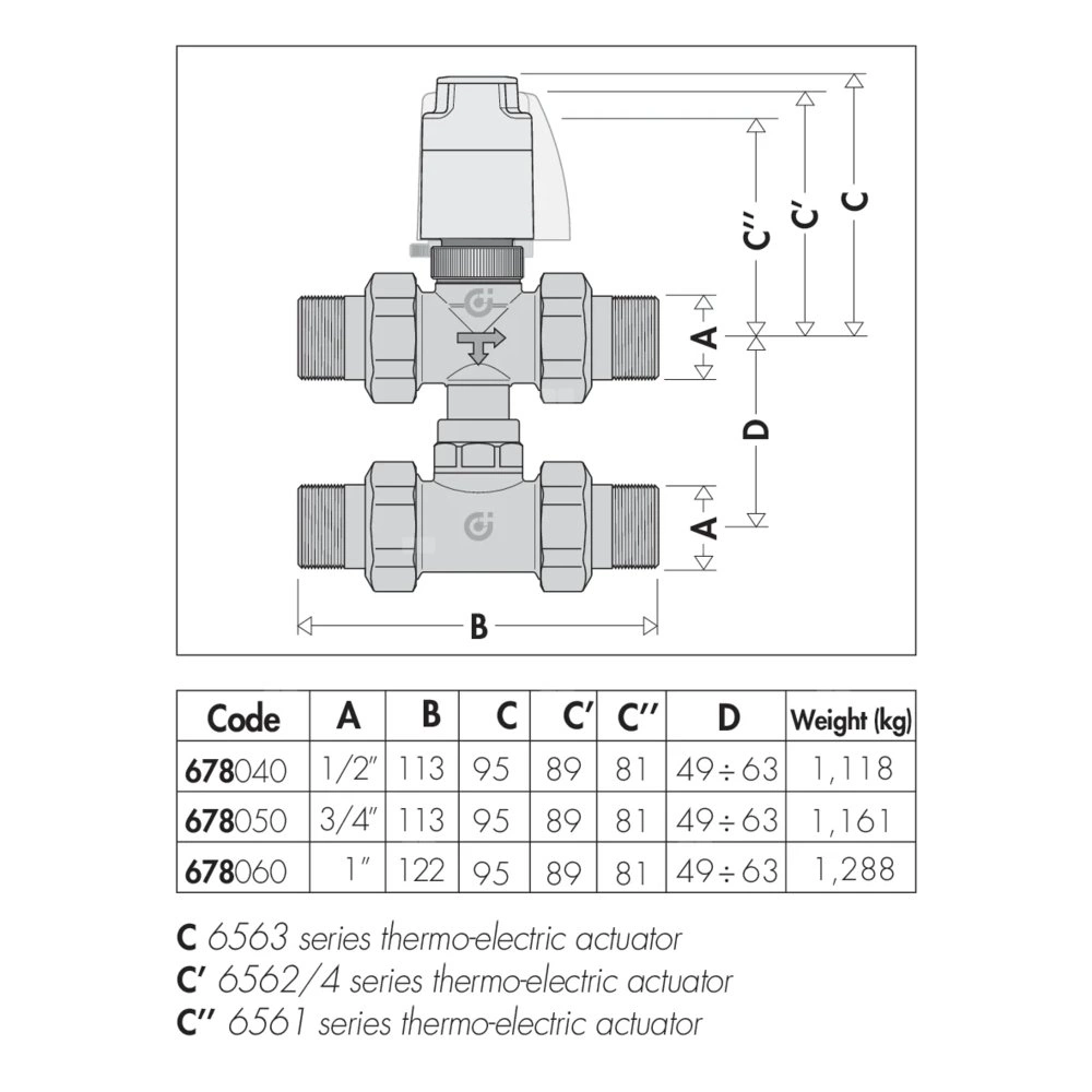 Trójdrożny zawór strefowy z obejściem współpracujący z siłownikami termoelektrycznymi serii 6563, 6561, 6562 i 6564 1/2"