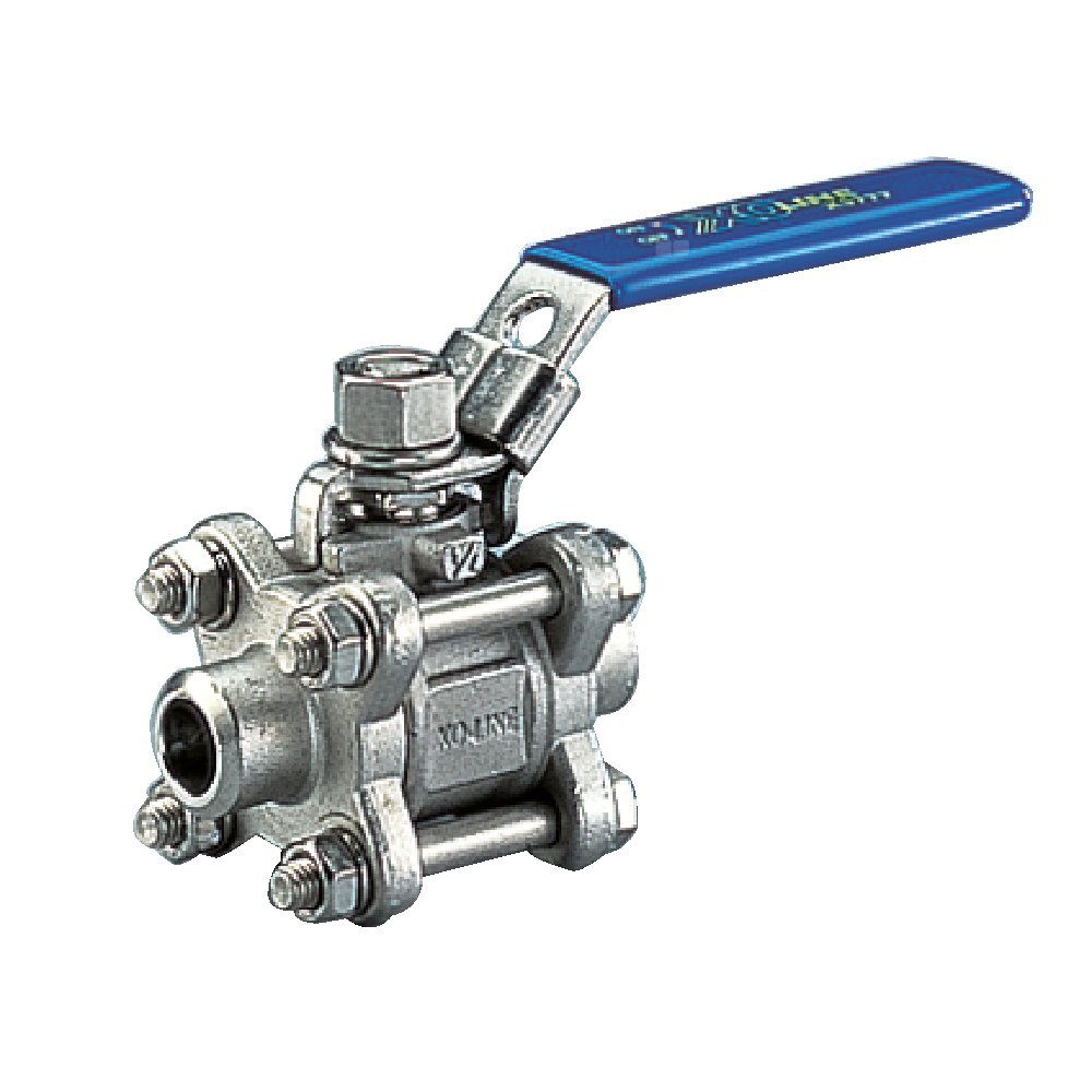 Typ X3777B - zawór odcinający kulowy z napędem ręcznym, przyłącza do wspawania czołowego, korpus trzyczęściowy, Pnom 2,5 MPa, tmax=200 st.C.