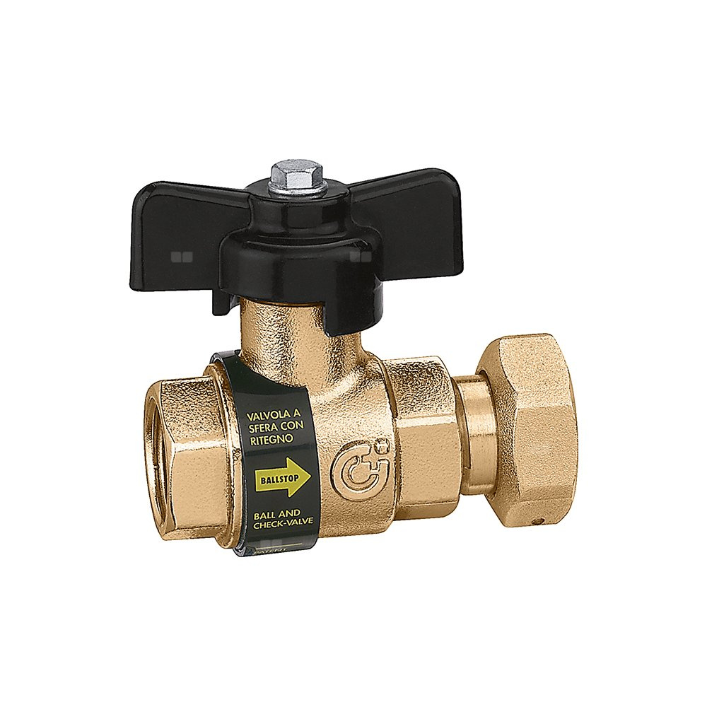 BALLSTOP - Zawór kulowy z wbudowanym zaworem zwrotnym, przyłącze z gwintem wewnętrznym, nakrętka zabezpieczona przed manipulacją