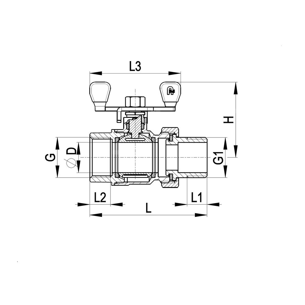Zawór kulowy do wody nakrętno-Wkrętny ze śrubunkiem i motylkiem 1