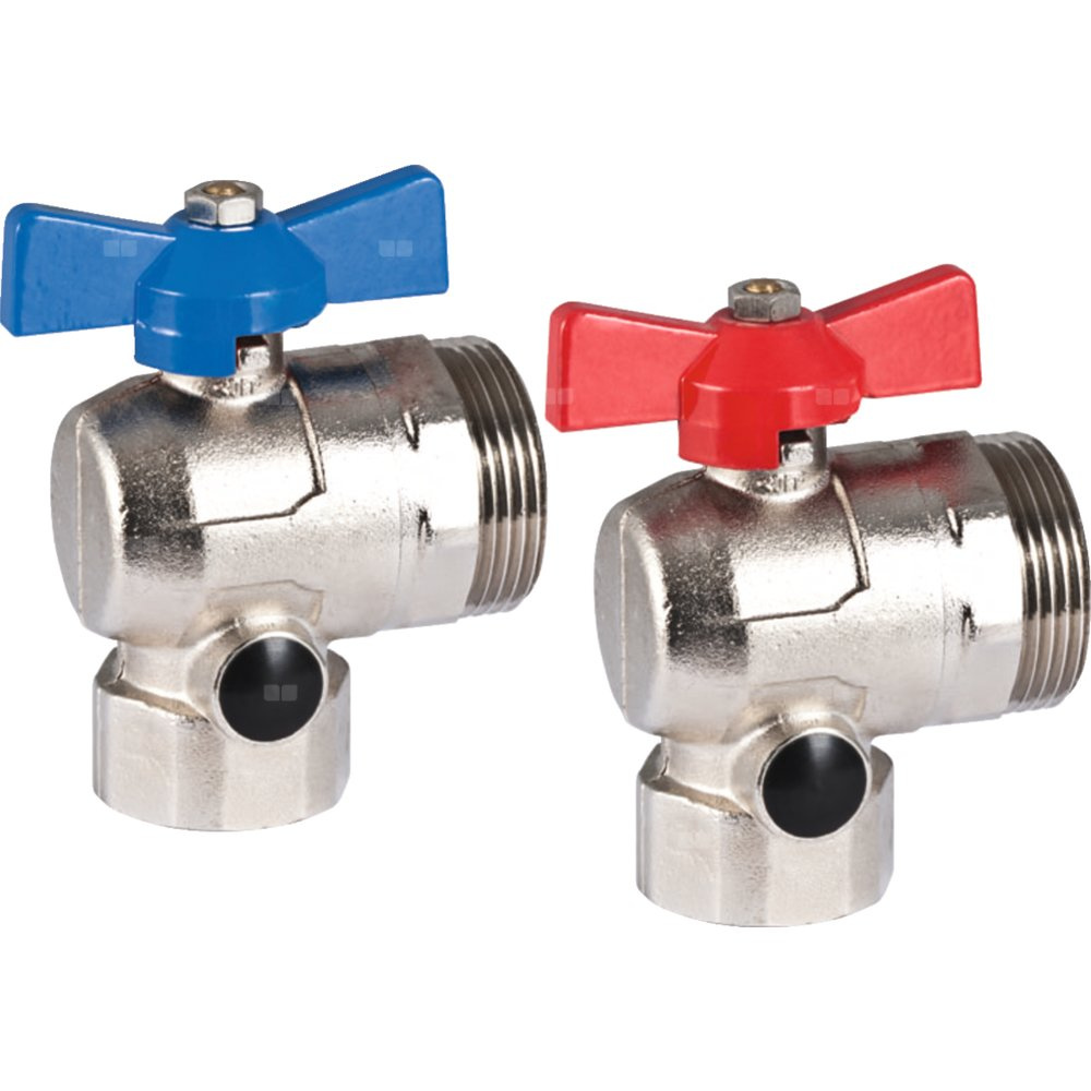Zawór kulowy GEBERIT Volex - Zestaw 1'' x 1 1/4'' GW x GZ kątowy, uchwyt: motylek (czerwony i niebieski)