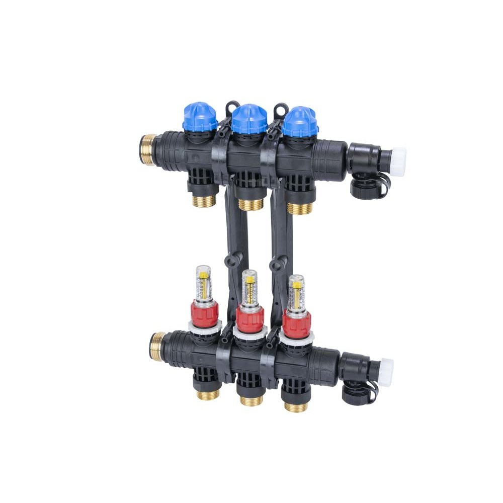 Rozdzielacz do ogrzewania podłogowego AFRISO ProCalida EF1 K 3-obieg. poliamid GZ 1'' x euroconus 3/4'' + przepływomierz + zawór napełn/spust