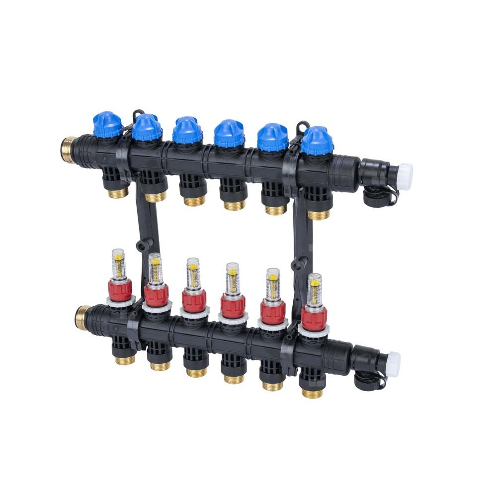 Rozdzielacz do ogrzewania podłogowego AFRISO ProCalida EF1 K 6-obieg. poliamid GZ 1'' x euroconus 3/4'' + przepływomierz + zawór napełn/spust