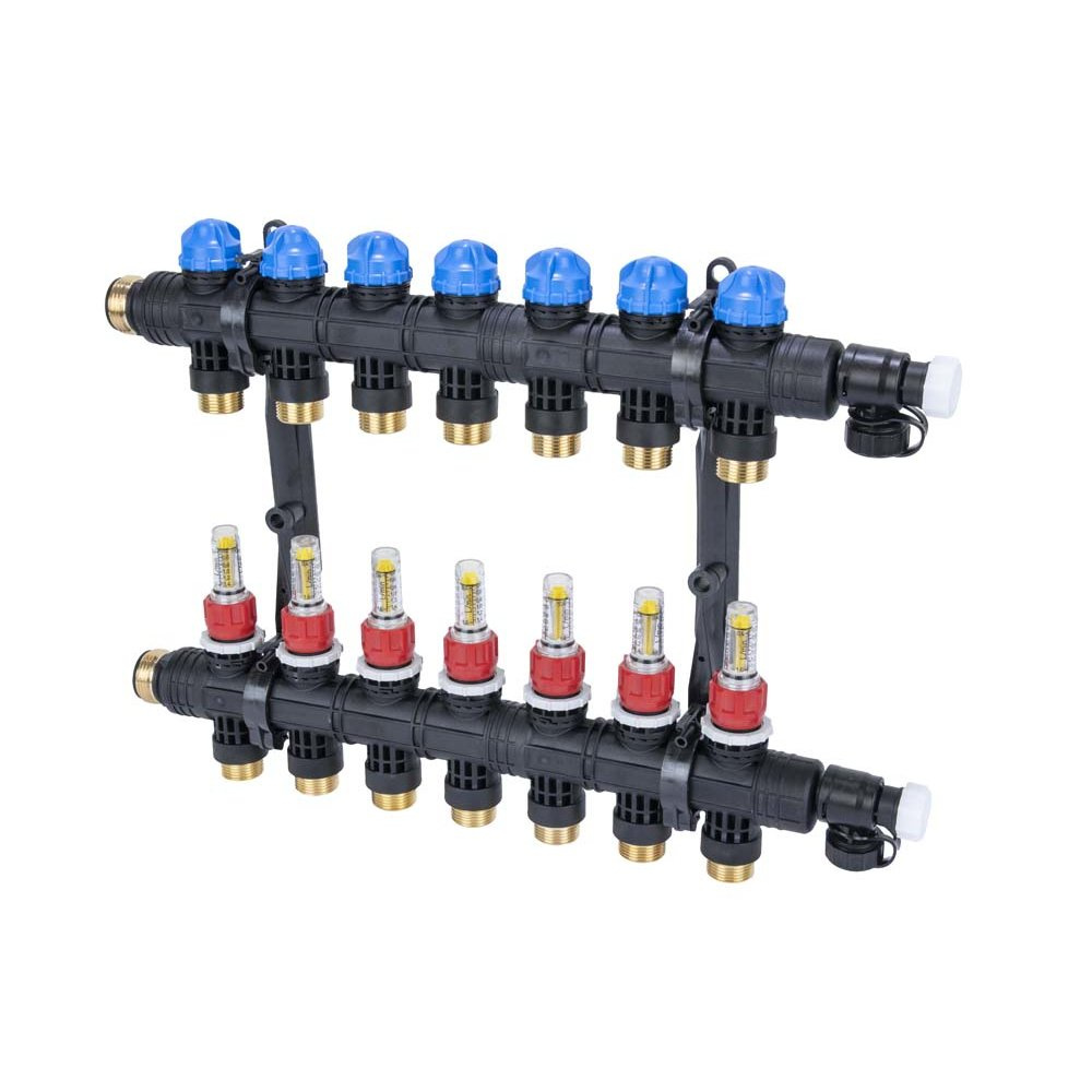 Rozdzielacz do ogrzewania podłogowego AFRISO ProCalida EF1 K 7-obieg. poliamid GZ 1'' x euroconus 3/4'' + przepływomierz + zawór napełn/spust