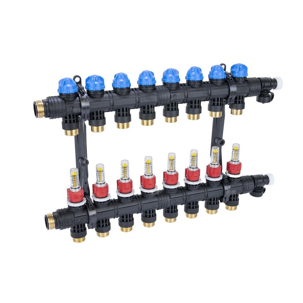 Rozdzielacz do ogrzewania podłogowego AFRISO ProCalida EF1 K 8-obieg. poliamid GZ 1'' x euroconus 3/4'' + przepływomierz + zawór napełn/spust