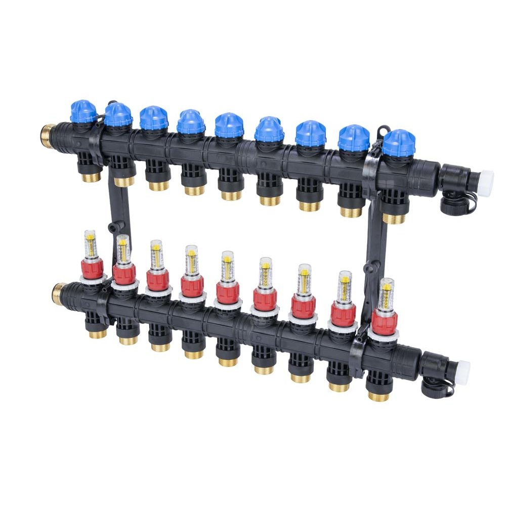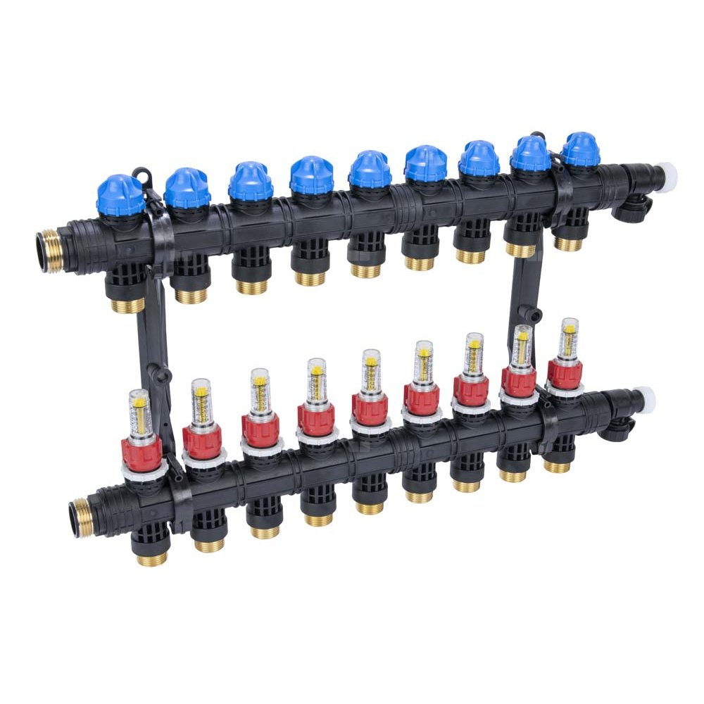 Rozdzielacz do ogrzewania podłogowego AFRISO ProCalida EF1 K 9-obieg. poliamid GZ 1'' x euroconus 3/4'' + przepływomierz + zawór napełn/spust
