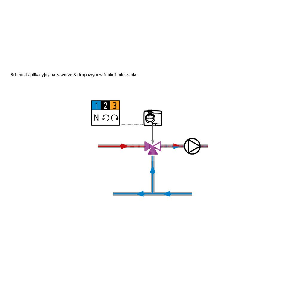 Stosowany w instalacjach grzewczych i chłodzących.Montowany na 3 i 4-drogowych obrotowych zaworach mieszających.