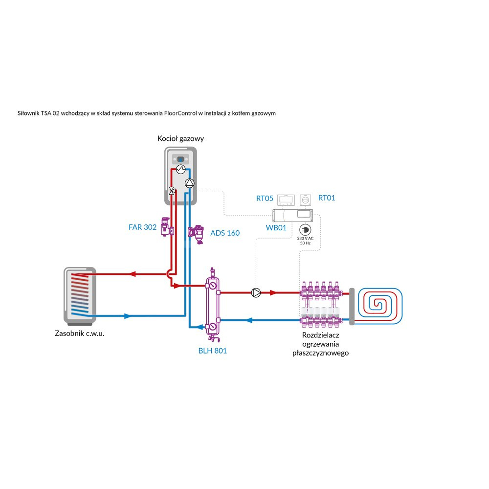 Połączony z listwą systemu sterowania instalacją płaszczyznową (np. FloorControl, CosiTherm) umożliwia ustawienie różnych temperatur w każdej ze stref.