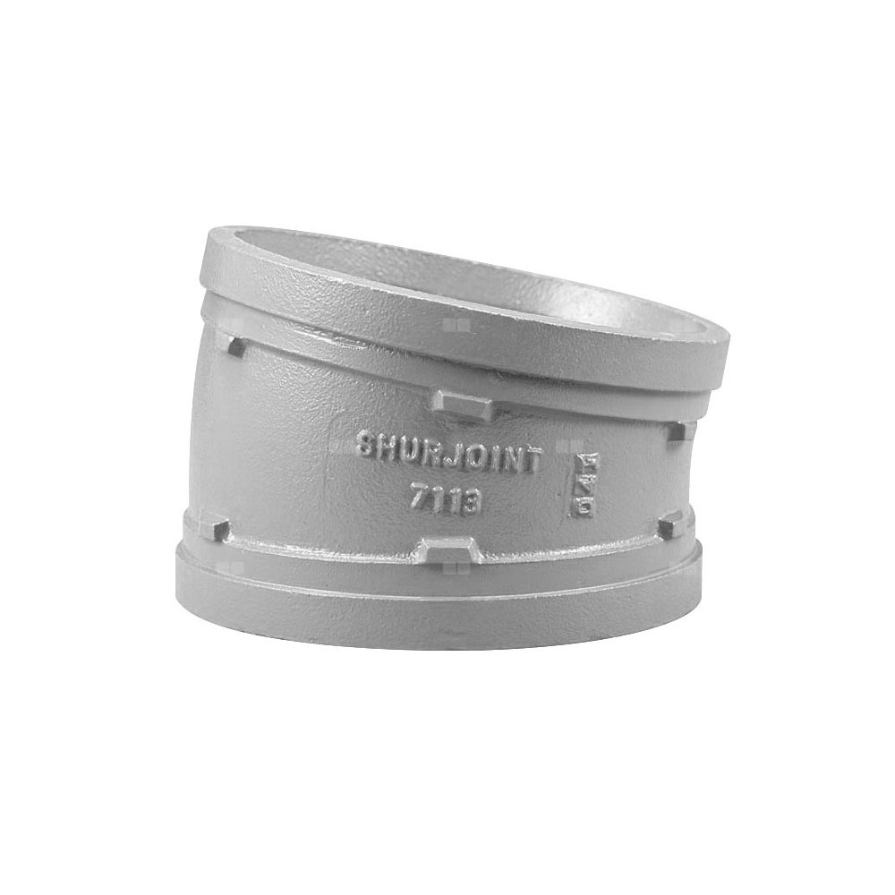 Kolano 11.25° ocynkowane Groove w zakresie średnic 42,4 (DN32) - 219,1 (DN200), 2 x rowek. Do zastosowania w instalacjach centralnego ogrzewania i chłodzenia, wody lodowej, sprężonego powietrza, a także w instalacjach PPOŻ tj. hydrantowych i tryskaczowych. System może być zastosowany także w instalacjach przemysłowych oraz rurociągach w górnictwie.