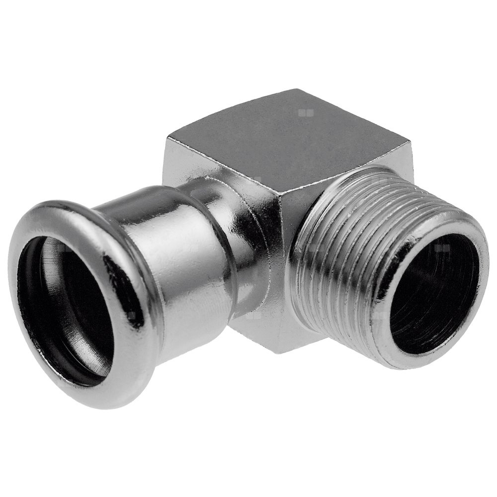 Kolano krótkie 90° GZ Steel w zakresie średnic 12 R3/8" - 22 R3/4" stalowe ocynkowane (Fe/Zn88), grubość warstwy 8-15 µm do połączeń zaprasowywanych z funkcją kontrolowanego przecieku LBP. Posiada uszczelnienie typu O-ring