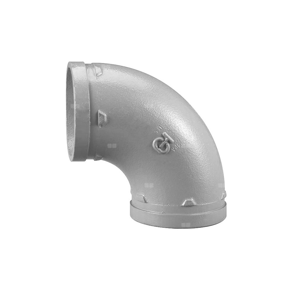 Kolano 90° ocynkowane Groove w zakresie średnic 33,7 (DN25) - 323,9 (DN300), 2 x rowek. Do zastosowania w instalacjach centralnego ogrzewania i chłodzenia, wody lodowej, sprężonego powietrza, a także w instalacjach PPOŻ tj. hydrantowych i tryskaczowych. System może być zastosowany także w instalacjach przemysłowych oraz rurociągach w górnictwie.