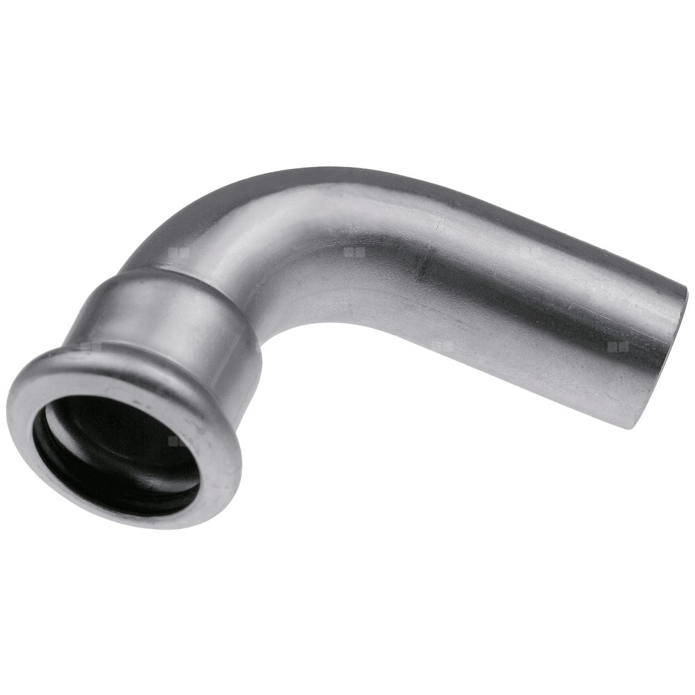 Kolano nyplowe 90° Inox ze stali nierdzewnej 1.4404 w zakresie średnic 12 - 168,3, do połączeń zaprasowywanych z funkcją kontrolowanego wycieku LBP. Posiada uszczelnienie typu O-ring