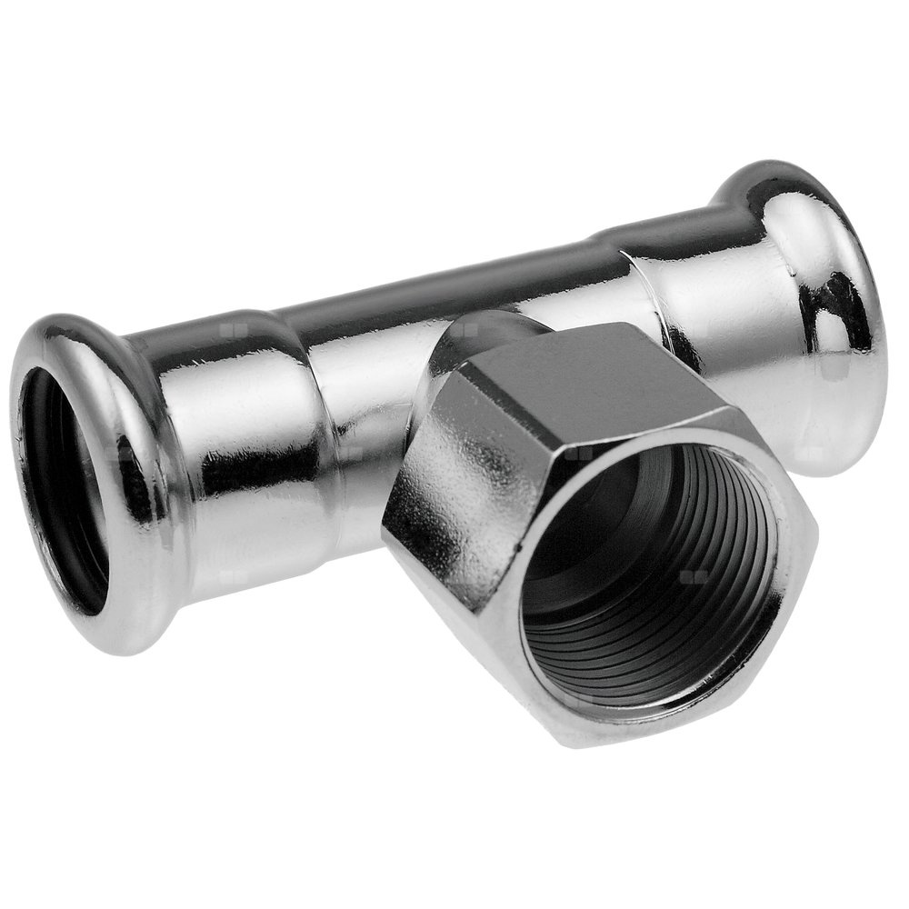 Trójnik GW Steel w zakresie średnic 15 Rp1/2" - 108 Rp 3/4" stalowy ocynkowany (Fe/Zn88), grubość warstwy 8-15 µm do połączeń zaprasowywanych z funkcją kontrolowanego przecieku LBP. Posiada uszczelnienie typu O-ring