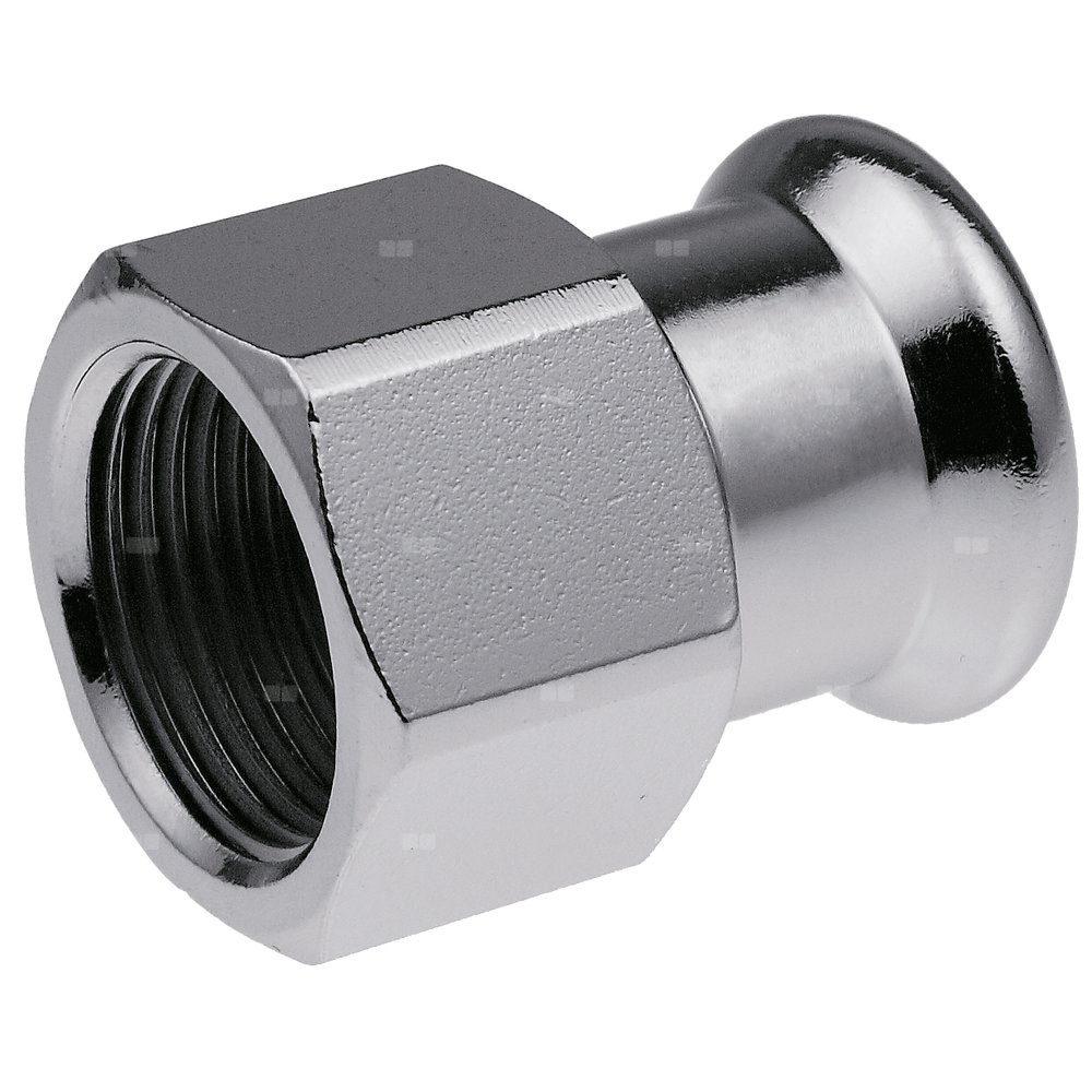 Złączka GW Steel w zakresie średnic 15 Rp1/2" - 54 Rp2" stalowa ocynkowana (Fe/Zn88), grubość warstwy 8-15 µm do połączeń zaprasowywanych z funkcją kontrolowanego przecieku LBP. Posiada uszczelnienie typu O-ring