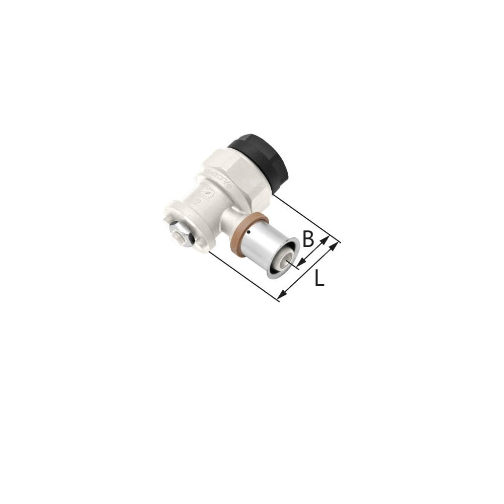 Kolano ścienne PPSU GW ultraPRESS w zakresie średnic 16 Rp½" - 20 Rp½" L = 40 mm, do połączeń zaprasowywanych z rurami jednorodnymi i wielowarstwowymi, pierścień do zaprasowywania - stal nierdzewna, funkcja kontrolowanego przecieku LBP, pierścień identyfikujący średnicę , uszczelnienie O-ringowe EPDM; wymiar B=24mm; kolano sprzedawane w komplecie z nakrętką M8 i zaślepką tworzywową. Zaślepka przeznaczona jest do wykonywania próby ciśnieniowej instalacji.