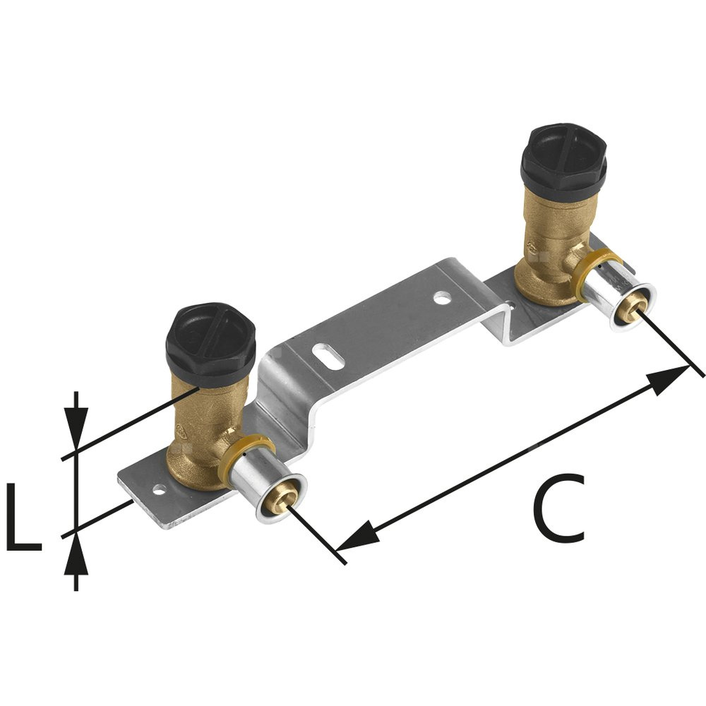 Komplet kolan ściennych mosiężnych GW na płytce montażowej ultraPRESS - 16 GW 1/2" L = 44 mm