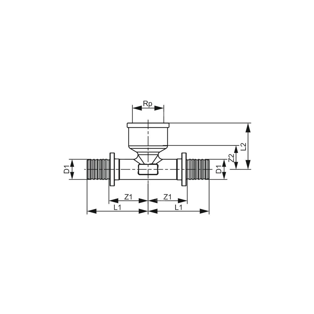 Trójnik z gwintem wewnętrznym z brązu do łączenia rur TECEflex ze złączkami gwintowanymi lub armaturą z gwintem zgodnie z normą EN 10226, za pomocą tulei zaciskowej, bez dodatkowych pierścieni uszczelniających typu O-ring. Złączka optymalizująca opór przepływu (wartość Zeta). Odpowiednie do każdej jakości wody pitnej. Bez tulei zaciskowych TECEflex.