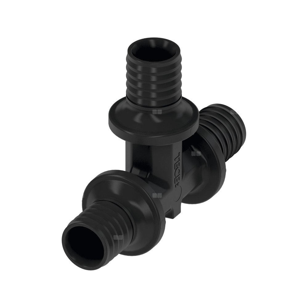 Trójnik z wysokowydajnego tworzywa PPSU Złączka optymalizująca opór przepływu (wartość Zeta) zarówno w obiegu jak i w odpływie. Do przyłączania tulei zaciskowej do rur TECEflex bez stosowania O-ringów. Bez tulei zaciskowych TECEflex.
