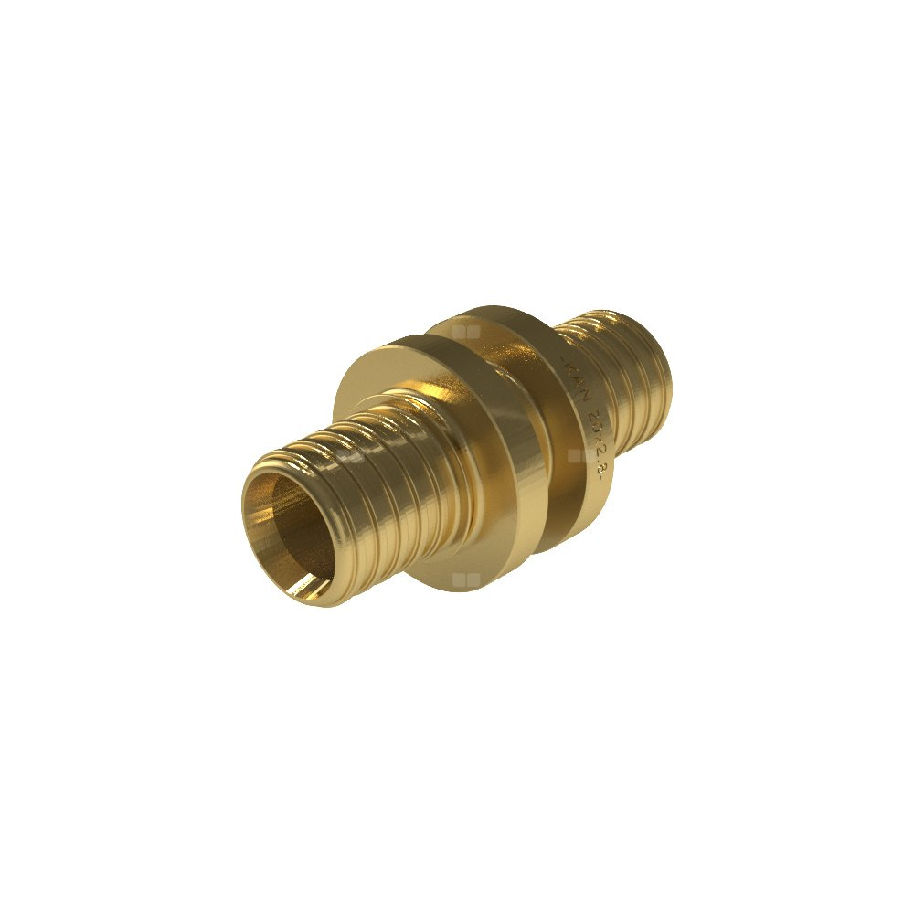 Łącznik mosiężny (CW617N) ultraLINE profilowany, w zakresie średnic 14 - 32mm; do bezoringowego łączenia rur PERT2, PEXC i PERTAL2 KAN-Therm za pomocą tulei nasuwnej z tworzywa PVDF.