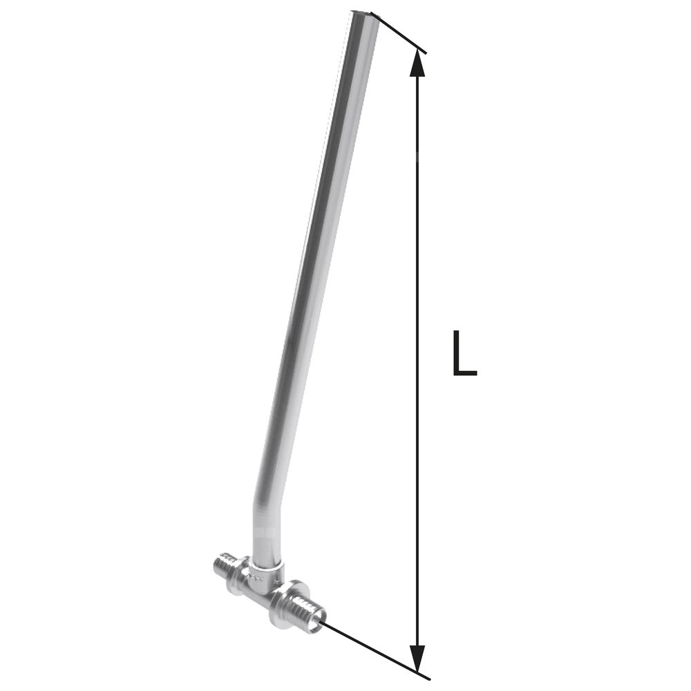 Trójnik redukcyjny mosiężny (CW617N) z niklowaną rurą miedzianą Cu Ø15 ultraLINE w zakresie średnic 16/14 - 20/16, L =300 mm, lewy/prawy do estetycznego podłączenia grzejników lub innych przyborów montowanych na ścianach. Trójnik z rurą niklowaną należy łączyć z zaworami grzejnikowymi oraz bezpośrednio z grzejnikami typu VK za pomocą kształtek do łączenia rurek niklowanych Ø15 mm. Połączenia są samouszczelniające.