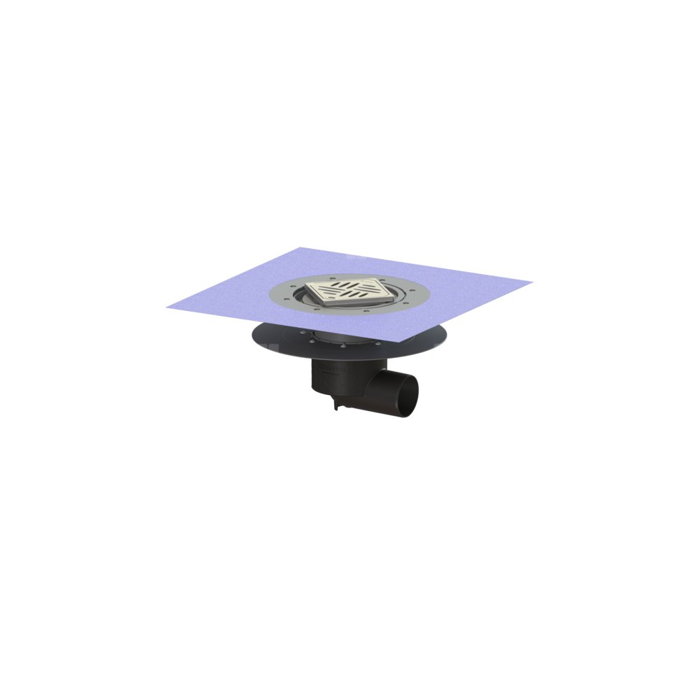 KESSEL Wpust obiektowy Ecoguss kołnier., wielkość nominalna (DN) 70, króciec boczny, odwodnienie przez odpływ punktowy, syfonem w zestawie, maks. wys. posadzki 24 mm, typ pokrywy Kratka design, regulowany w trzech wymiarach