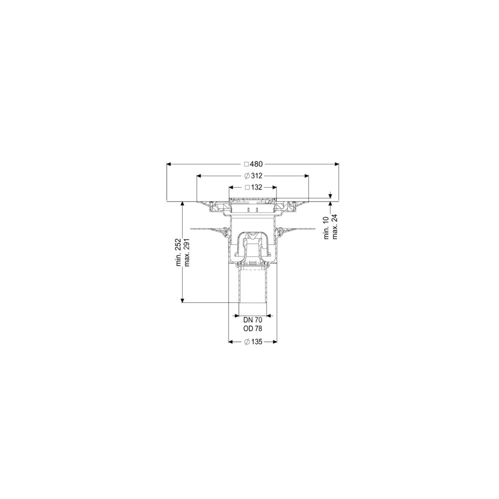 KESSEL Wpust obiektowy Ecoguss kołnier., wielkość nominalna (DN) 70, króciec pionowy, odwodnienie przez odpływ punktowy, syfonem w zestawie, maks. wys. posadzki 24 mm, typ pokrywy Kratka design, regulowany w trzech wymiarach