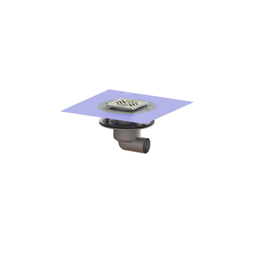 Wpust Ferrofix DN70, odpł.boczny, z nasadką Variofix z ABS i kratką/ramą nierdz. 138x138, przeciwpośl., sys.125