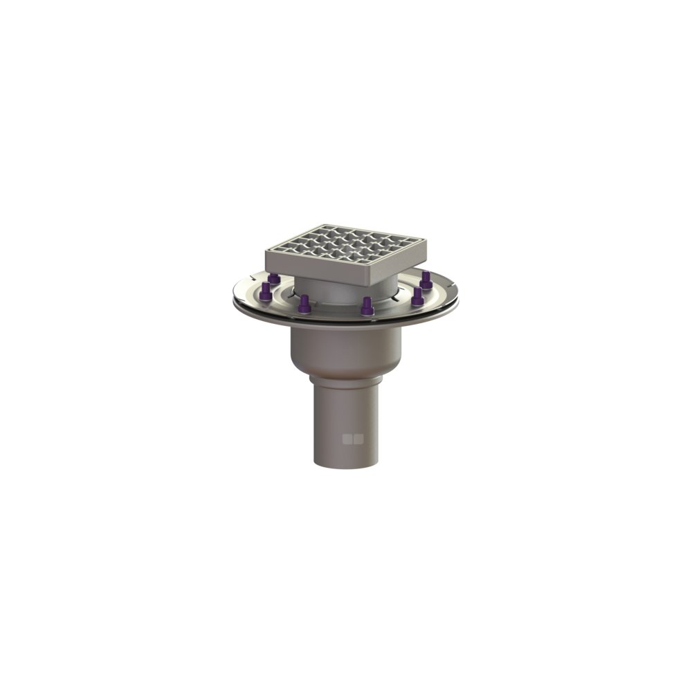 Wpust podłogowy/stropowy Ferrofix ze stali nierdzewnej służy do odwodnienia punktowego i jest wyposażony w dociskowy kołnierz uszczelniający oraz wyjmowany syfon ze stali nierdzewnej, uszczelkę wargową i pokrywę ochronną na czas fazy budowlanej. Dociskowy kołnierz uszczelniający z trzpieniami i śrubami ze stali nierdzewnej służy do dociskania lub zgrzewania taśm bitumicznych i polimerowo-bitumicznych oraz taśm uszczelniających z tworzywa sztucznego i elastomerów. Do uszczelnień zabezpieczających przed wodą wolno użyć wyłącznie sprawdzonych przez producenta taśm uszczelniających. Króciec odpływowy jest przystosowany do podłączenia do rur SML. Z możliwością przyłączenia do systemu wyrównania potencjałów.