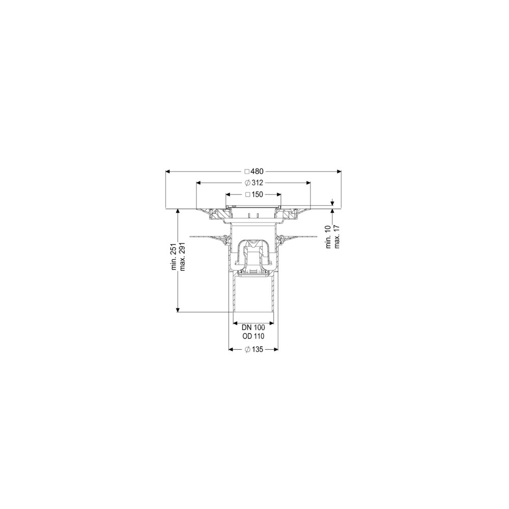 KESSEL Wpust obiektowy Ecoguss kołnier., wielkość nominalna (DN) 100, króciec pionowy, odwodnienie przez odpływ punktowy, syfonem w zestawie, maks. wys. posadzki 17 mm, typ pokrywy Kratka szczelinowa, regulowany w trzech wymiarach