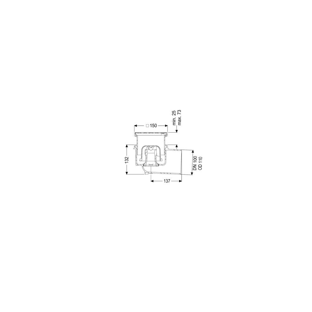 KESSEL Wpust obiektowy Ecoguss, wielkość nominalna (DN) 100, króciec boczny, typ pokrywy Kratka szczelinowa, syfonem w zestawie, z regulowaną wysokością, maks. wys. posadzki 25 mm, zamknięcie przykręcony
