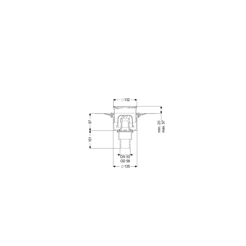 KESSEL Wpust obiektowy Ecoguss kołnier., wielkość nominalna (DN) 50, króciec pionowy, odwodnienie przez odpływ punktowy, syfonem w zestawie, maks. wys. posadzki 16 mm, typ pokrywy Kratka design, z regulowaną wysokością