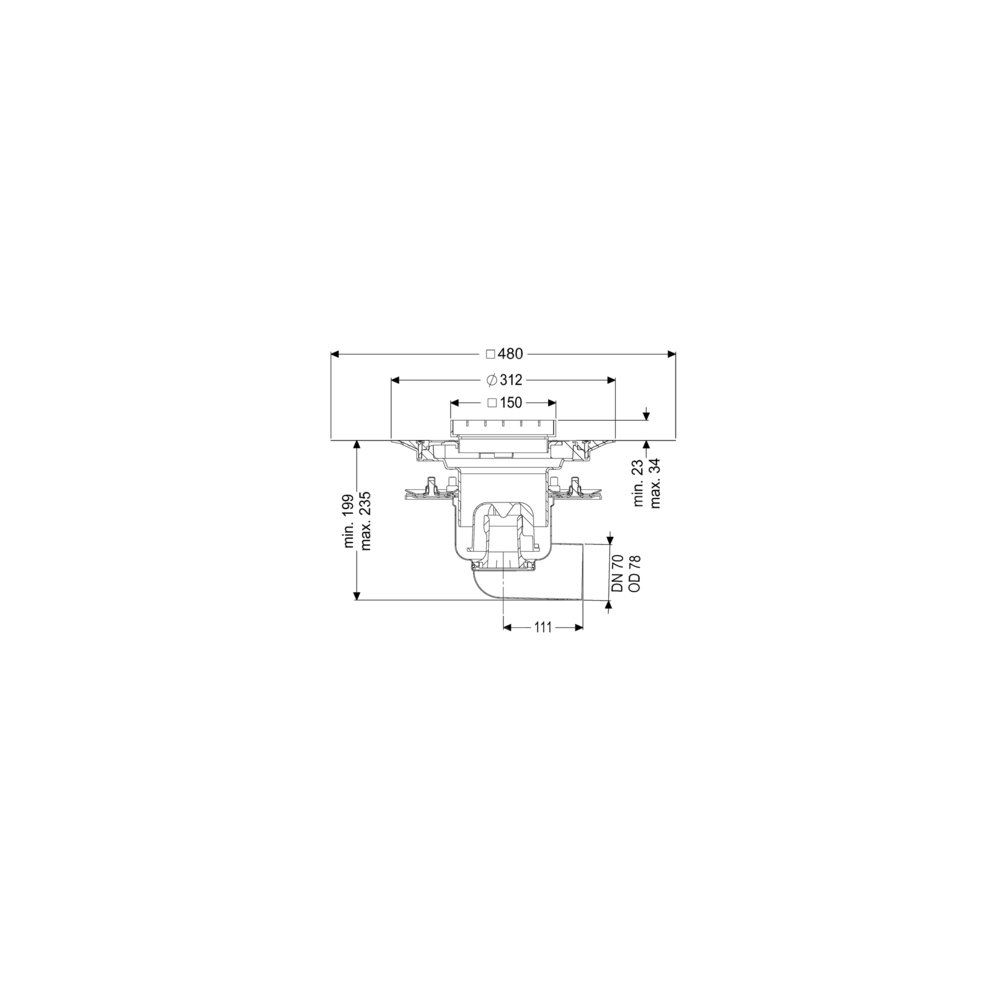 KESSEL Wpust pod. Ferrofix doc.koł.usz., wielkość nominalna (DN) 70, System 125, króciec boczny, materiał nasady ABS, regulowany w trzech wymiarach, typ pokrywy Ruszt kratowy, wymiar zewnętrzny (DZ) 78 mm