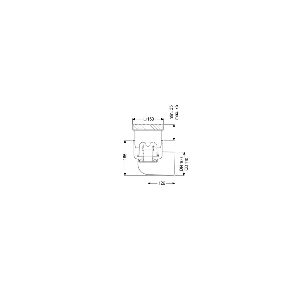 KESSEL Wpust podłogowy/stropowy Ferrofix, System 125, wielkość nominalna (DN) 100, typ pokrywy Ruszt kratowy, dł. pokrywy 138 mm, króciec boczny, z regulowaną wysokością, wymiar zewnętrzny (DZ) 110 mm, pojemność 22,97 dm³