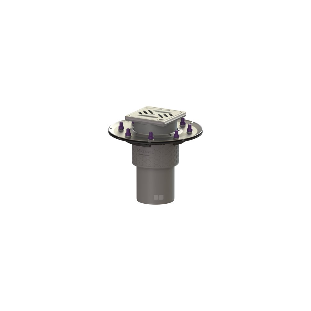 KESSEL Wpust obiek.Practicus doc.koł.usz, dł. pokrywy 120 mm, króciec pionowy, wielkość nominalna (DN) 100, syfonem w zestawie, typ pokrywy Kratka design, kratka design Kessel, uszczelnienie nasadzie przez Krawędź przyłączeniowa