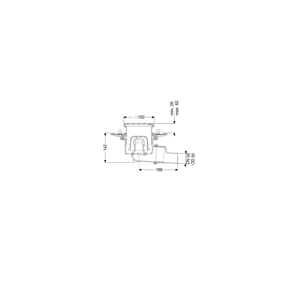 KESSEL Wpust obiek. Practicus doc.koł., dł. pokrywy 138 mm, króciec boczny, wielkość nominalna (DN) 50, syfonem w zestawie, typ pokrywy Kratka szczelinowa, kratka design Kessel, uszczelnienie nasadzie przez Krawędź przyłączeniowa