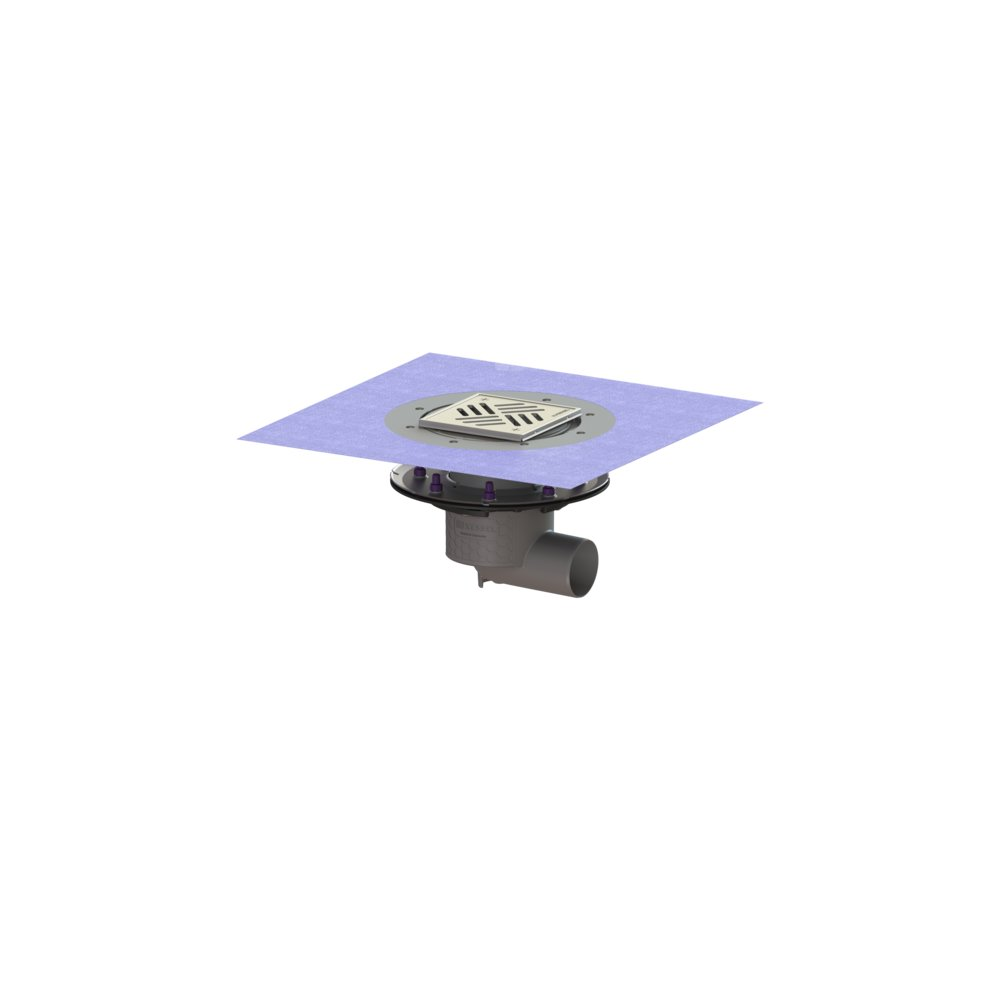 KESSEL Wpust obiek. Practicus doc.koł., dł. pokrywy 138 mm, króciec boczny, wielkość nominalna (DN) 70, syfonem w zestawie, typ pokrywy Kratka szczelinowa, kratka design Kessel, uszczelnienie nasadzie przez załączona mata uszczelniająca do przyklejenia (zmu) wg DIN 18534