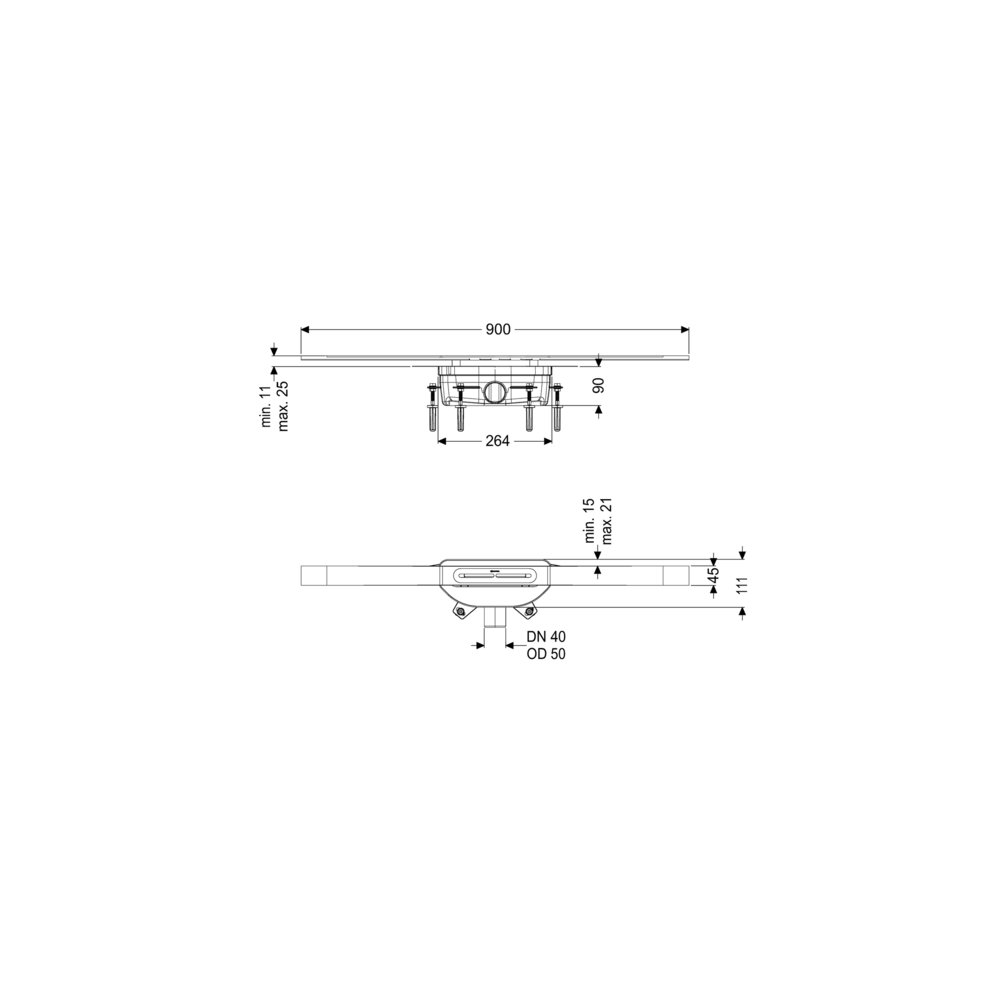 KESSEL Odpływ linio.Linearis Infinity 90, dł. pokrywy 900 mm, odpływ DN 50 mm, powierzchnia Bronze powierzchnia szczotkowana, typ pokrywy pokrywa ze stali nierdzewnej, syfonem z zamknięciem wodnym 50 mm