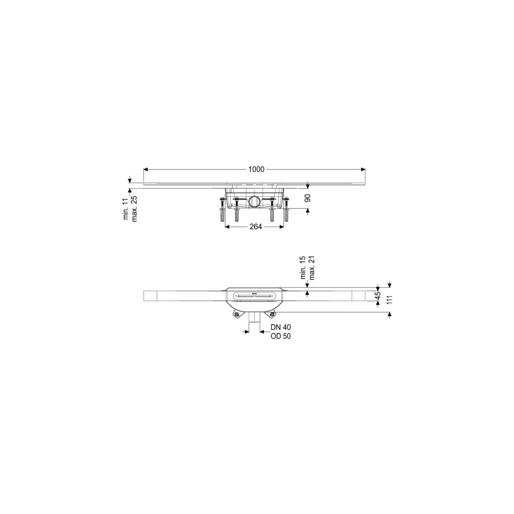 KESSEL Odpływ linio.Linearis Infinity 90, dł. pokrywy 1000 mm, odpływ DN 50 mm, powierzchnia Black powierzchnia szczotkowana, typ pokrywy pokrywa ze stali nierdzewnej, syfonem z zamknięciem wodnym 50 mm
