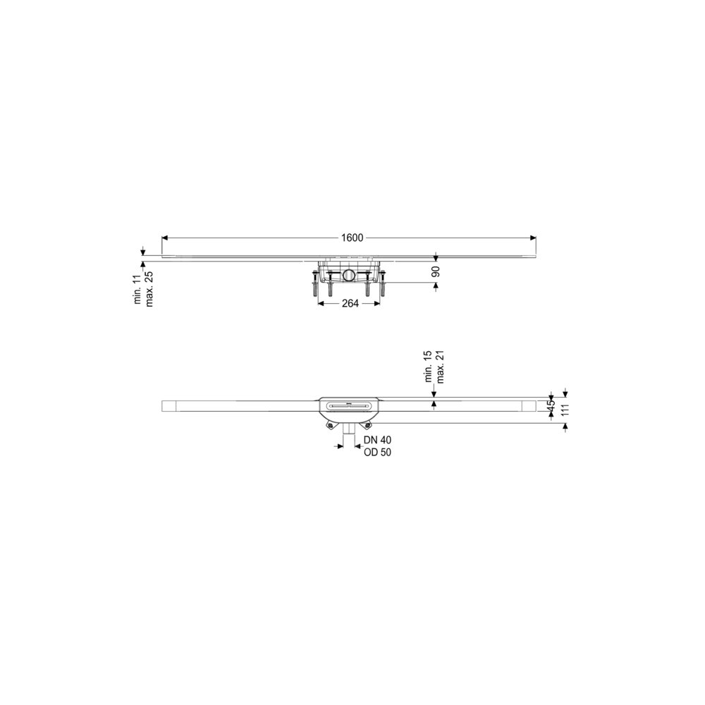 KESSEL Odpływ linio.Linearis Infinity 90, dł. pokrywy 1600 mm, odpływ DN 50 mm, powierzchnia Stal nierdzewna, powierzchnia szczotkowana, typ pokrywy pokrywa ze stali nierdzewnej, syfonem z zamknięciem wodnym 50 mm