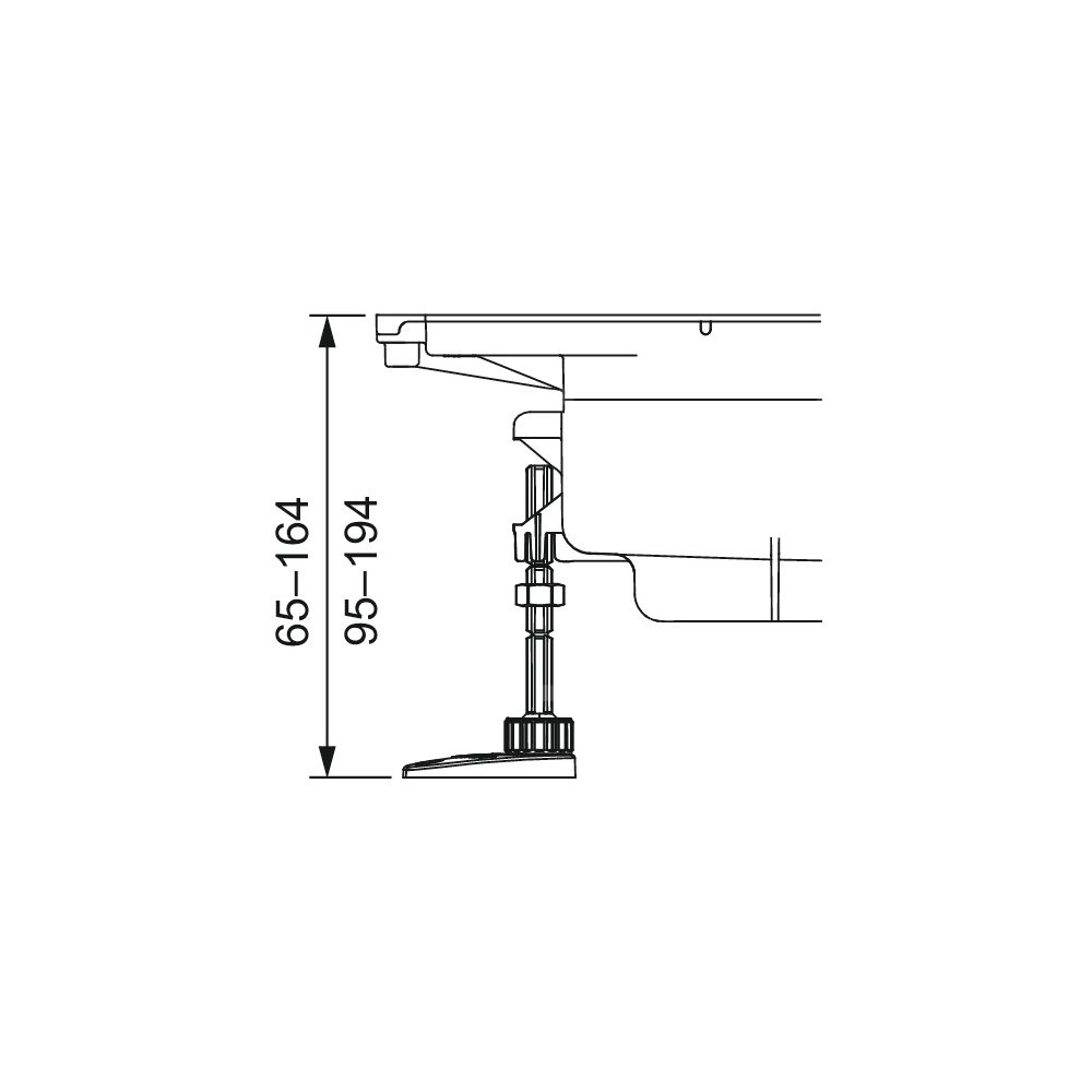 Stopki montażowe do syfonu odpływowego TECEdrainprofile „standard” i „niskiego” do łatwej regulacji wysokości i wypoziomowania podczas montażu na stropie. Zakres regulacji dla syfonu „standard”: 95-194 mm, oraz dla syfonu "niskiego": 65-164 mm (od dolnej krawędzi stopki do górnej krawędzi odpływu lub jastrychu).