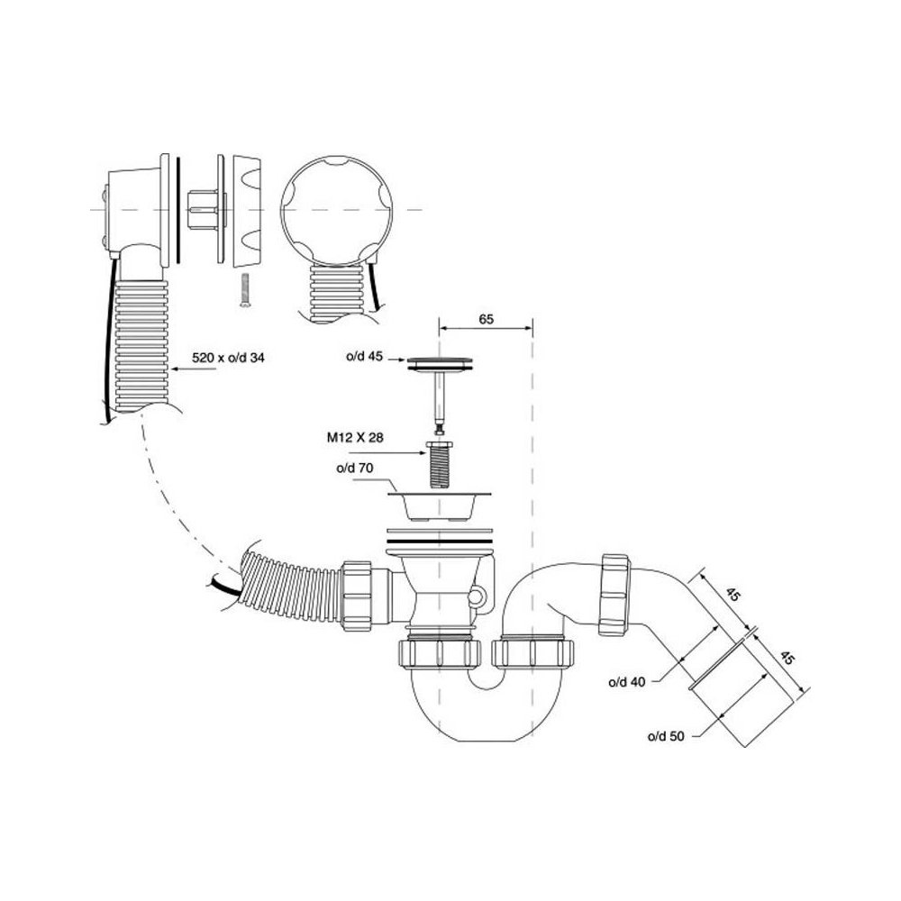 Zestaw odpływ-przelew.wannowy z odejściem 40/50mm,z mechanizmem autom. pokrętło mosiądz STAL SZCZOTKOWANA