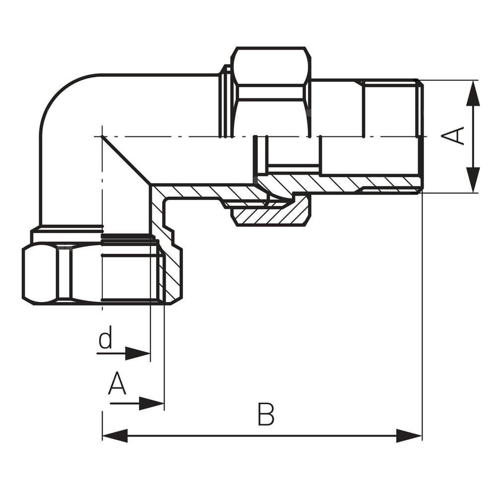 Śrubunek kątowy wykonany z mosiądzu wysokogatunkowego CW617N. Maksymalna temperatura pracy 95°C. Maksymalne ciśnienie 10 bar