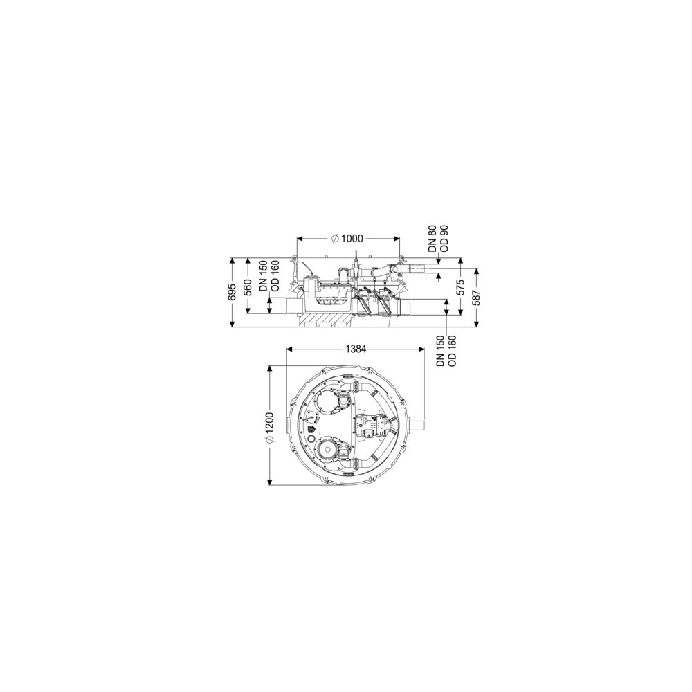 KESSEL Przepompownia przeciw. Ecolift XL, ścieków Ścieki zawierające fekalia i bez fekaliów, ustawienie swobodne, Pojedyncza jednostka, z pompą zatapialną SPF 4500, czujnik alarmu z Sonda optyczna, sterownik Comfort Plus z redundancją, Wariant z pogłębioną zabudową