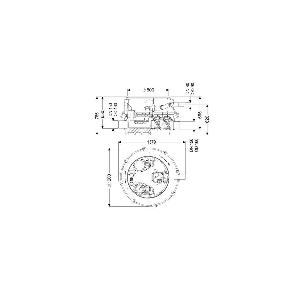 KESSEL Przepompownia przeciw. Ecolift XL, ścieków Ścieki zawierające fekalia i bez fekaliów, zabudowa w ziemi, Pojedyncza jednostka, z pompą zatapialną SPF 4500, czujnik alarmu z Sonda optyczna, sterownik Comfort Plus z redundancją, Wariant z najniższą zabudową