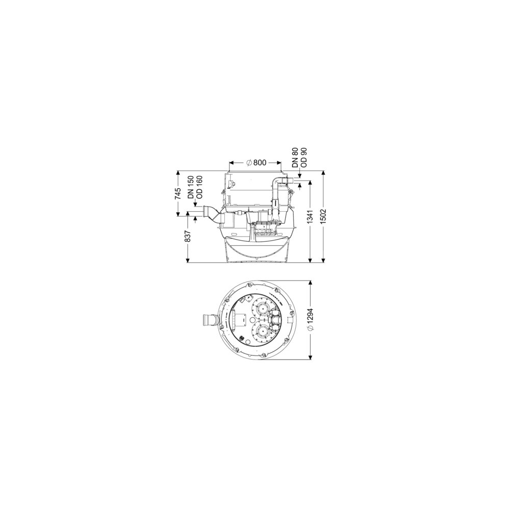 KESSEL Przepompownia Aquapump XL, Duo, ścieki fekalne, zabudowa w ziemi, wysokość 1500 mm, sterowanie pompą przez sterownik, z 2 SPF 1500 pomp zatapialnych, typ pracy S1, rozpoznawania poziomu pneumatyczny