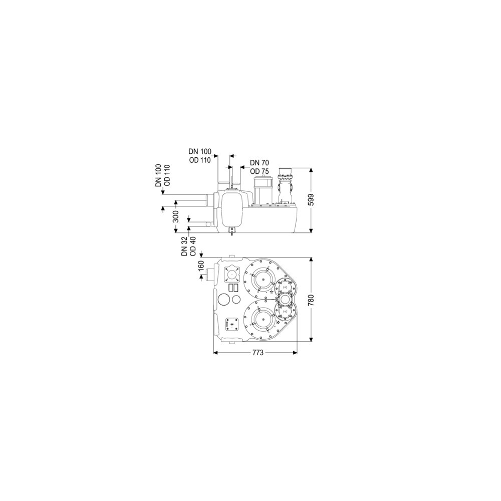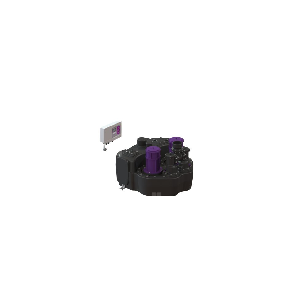 Przepompownia do ścieków zawierających fekalia i bez fekaliów jest wyposażona w dwie pompy zatapialne oraz zawór zwrotny. Pojemnik zbiorczy wykonany z wytrzymałego tworzywa sztucznego (PE) oferuje uniwersalne możliwości podłączenia i posiada przykręcany otwór wyczystkowy.