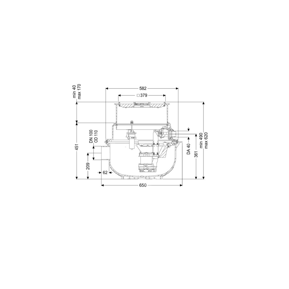 Gotowa do przyłączenia przepompownia do ścieków bez fekaliów jest wyposażony w jedną lub dwie pompy zatapialną oraz zawór zwrotny. Zbiornik wykonany z trwałego tworzywa sztucznego (PE) posiada otwartą komorę pompy. Zamknięcia jednoręczne umożliwiają łatwe wyjęcie zintegrowanych komponentów. Urządzenie do zabudowy w płycie podłogowej jest wstępnie zmontowane do montażu końcowego w miejscu instalacji.