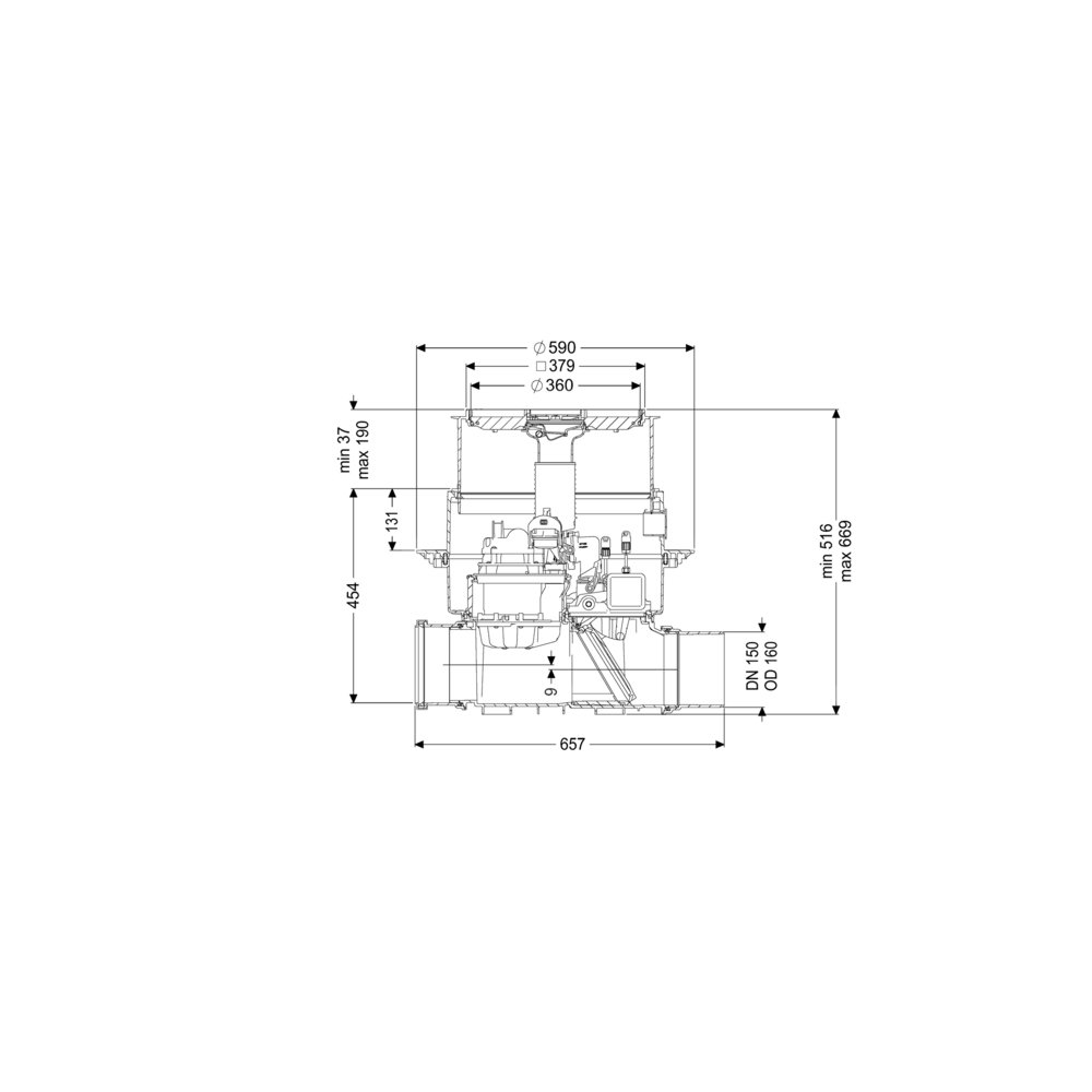 W normalnym stanie przekrój rury jest otwarty. W przypadku przepływu zwrotnego system zamykania za pomocą silnika zostaje automatycznie zamknięty. Odprowadzanie w trakcie fazy przepływu zwrotnego odbywa się przez pompę ze zintegrowanym mechanizmem rozdrabniającym.