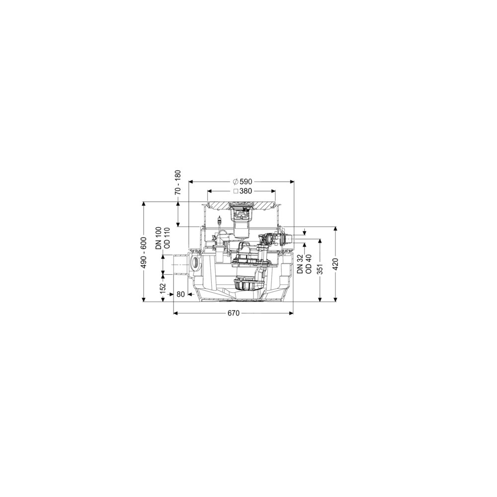 KESSEL Przepompownia Aqualift F Compact Duo, ścieki fekalne, typ pokrywy pokrywa z rusztem szczelinowym, zabudowa w płycie podłogowej, głębokość zabudowy 490 - 600 mm, urządzenie dwupompowe, z 2 SPZ 1000 resistant pomp zatapialnych, Odporna na media zawierające sole, ścieki z instalacji zmniejszających twardość wody oraz na kondensaty z urządzeń grzewczych